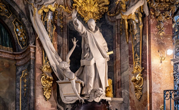 Munich, Germany. September 14, 2025: Baroque sculpture of a saint casting out a demonShutterstock