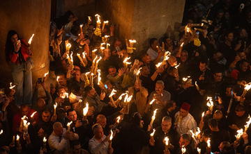 For centuries, Orthodox Christians have gone on pilgrimage to the Church of the Holy Sepulchre in Jerusalem for the Holy Fire Saturday event where a supposed miraculous fire proceeds from within the empty tomb of the Resurrected Lord Jesus Christ and is spread on candles throughout the shrine, to those outside and throughout Jerusalem, Palestine, and even to locations around the world.