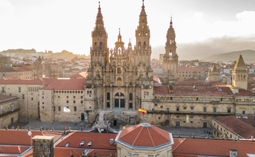 Aerial view of the Cathedral of Santiago de Compostela at sunrise in Galicia, Northern SpainMazur Travel/Shutterstock