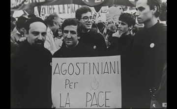 The photo can also be found among the images preserved in the historical archive of the Italian Communist Party. Alongside the Augustinians (see here), members of several other religious orders – such as Franciscans and Jesuits – also took part in the event. The demonstration, held in those daysalso in other important European cities such as London, Paris, Amsterdam, and Bonn, brought together people of all religions and political orientations, though it was clearly oriented in an anti‑NATO direction.